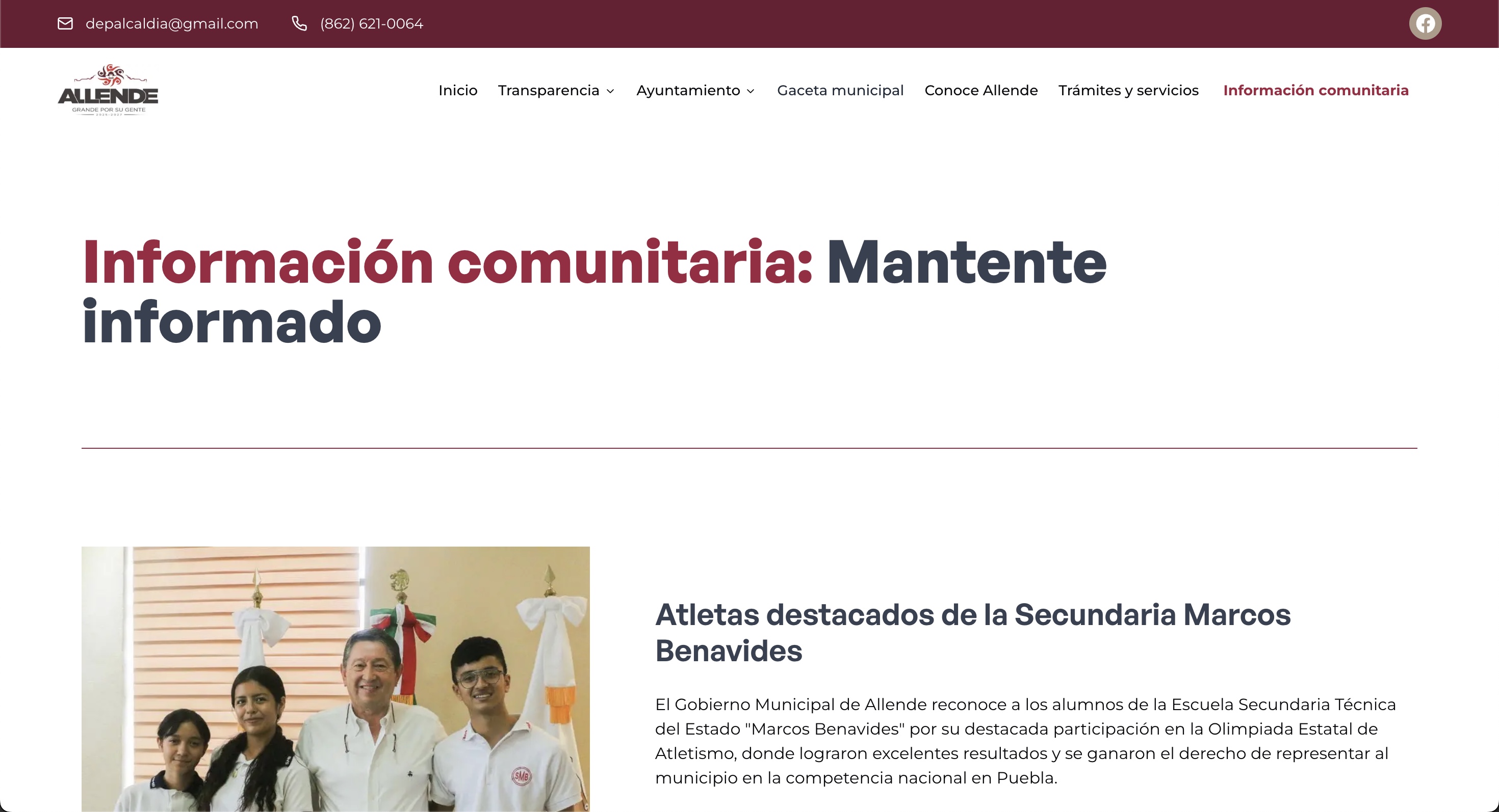 El Municipio de Allende es un gobierno local en Coahuila, México, que busca fortalecer la comunicación con sus ciudadanos a través de herramientas digitales. Como administración pública, su compromiso es brindar información clara, accesible y fomentar la transparencia en cada una de sus acciones.